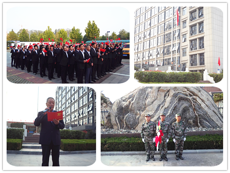 儀式上,集團(tuán)董事長李廣法發(fā)表莊嚴(yán)致辭。致辭中提到:“70年,路漫漫滄桑幾度,旗獵獵風(fēng)雨如磐;70年,中華兒女砥礪奮進(jìn)、眾志成城、攻堅(jiān)克難,為民族復(fù)興奮斗;七十年,強(qiáng)國征程波瀾壯闊,華夏巨變舉世矚目。中華民族從未像今天這樣,似騰飛的巨龍,像咆哮的雄獅,以東方巨人的英姿讓世界刮目相看,贏得世界尊敬;中國人民從未像今天這樣幸福和美、揚(yáng)眉吐氣,我們對國家和民族的前途充滿信心?!?br />        以此號召集團(tuán)全體干部員工緊密團(tuán)結(jié)在以習(xí)近平為核心的黨中央周圍,闊步新時代,高舉習(xí)近平新時代中國特色社會主義旗幟,不忘初心,牢記使命,把強(qiáng)烈的愛國熱情轉(zhuǎn)化為干好本職工作的實(shí)際行動,為建設(shè)社會主義現(xiàn)代化強(qiáng)國而努力奮斗!